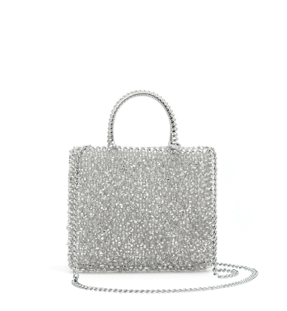 エクスクルーシヴな素材を使い、ひとつひとつを手編みで仕立てたワイヤーバッグ。